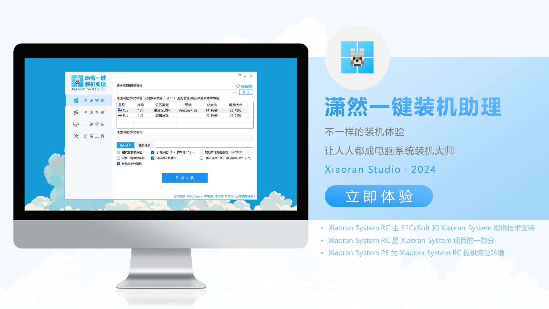 潇然一键装机助理 Xiaoran System Onekey RC 是一个方便安装系统及系统维护的工具,同时提供丰富的扩展功能,目前简称“XROK”。